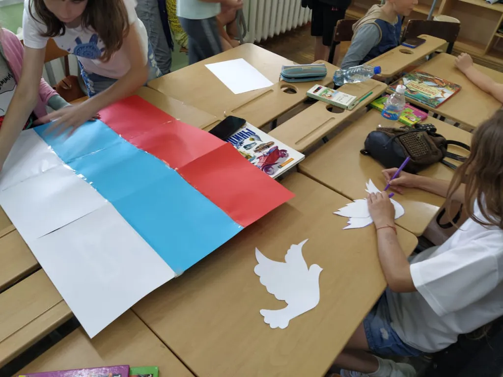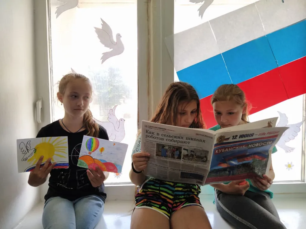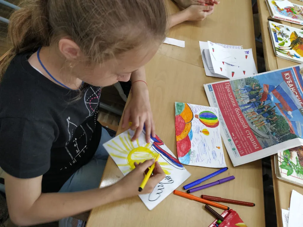 В преддверии празднования Дня России в МБОУ СОШ 12 в рамках работы профильного лагеря "Патриоты Кубани" и лагеря труда и отдыха "Трудяжки" прошли Всероссийские акции "Флаги России", "Окна России", акция "Рисуем Россию", флеш-моб "Мы Россия", прогулки по стране "Я познаю Россию", встречи с интересными людьми "Герои сегодняшнего дня"