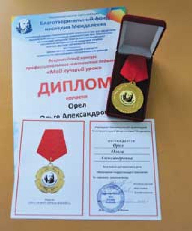 Буквально под бой курантов, в последние дни уходящего года из Москвы вернулась учитель начальных классов павловской СШ № 12 Ольга Александровна Орел. И не с пустыми руками, а с дипломом второй степени всероссийского конкурса профессионального педагогического мастерства «Мой лучший урок» и медалью «За службу образованию», учрежденной некоммерческой организацией «Благотворительный фонд наследия Менделеева». Конкурс проходит при поддержке Министерства образования и науки РФ на базе московских педагогических вузов.